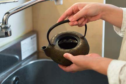 Then throw away the hot water. Repeat this 2-3 times. *Please be careful not to empty the fire.