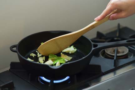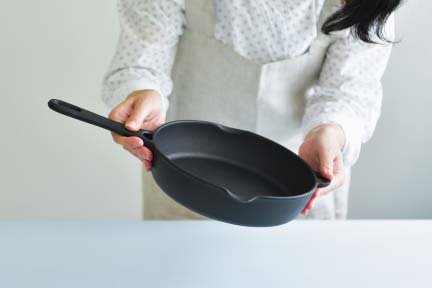 本体をお湯でよく洗い、軽く空焚きして水分を蒸発させます。その後食用油を塗って野菜屑などを炒め、油を十分になじませてからご使用ください。